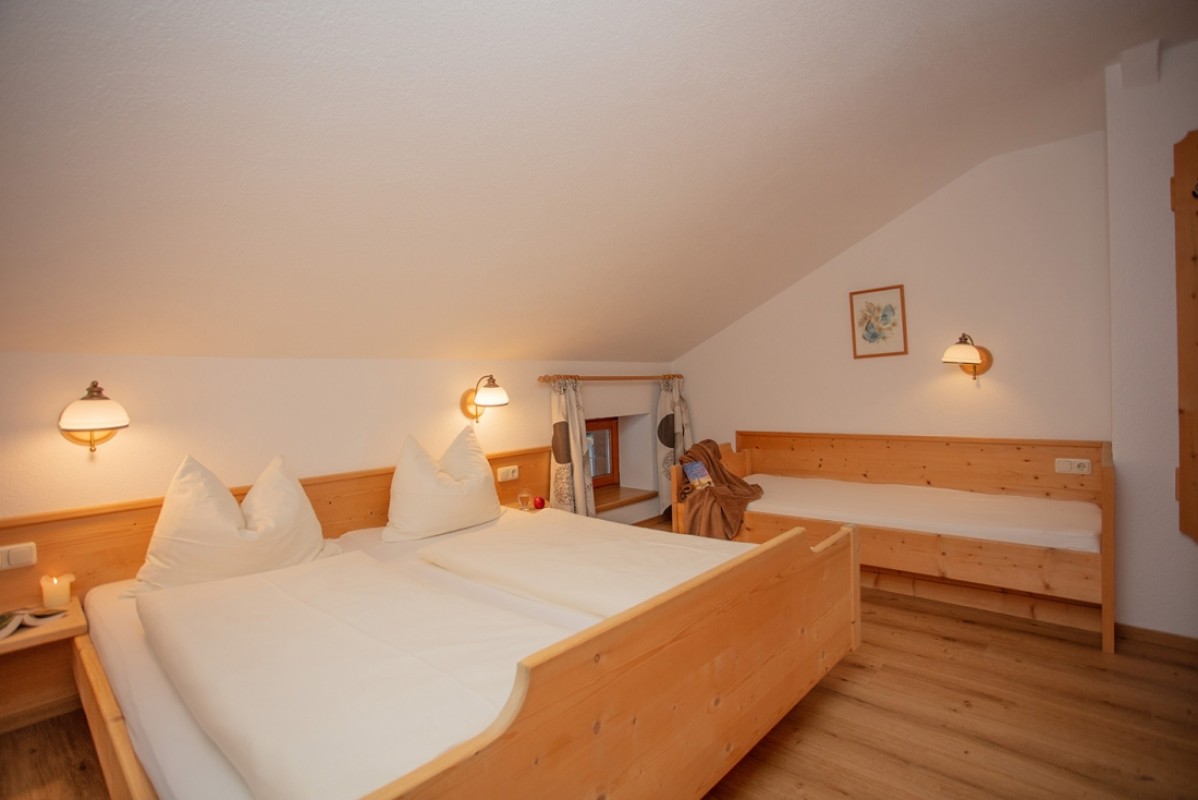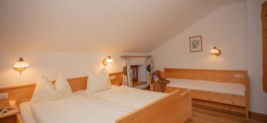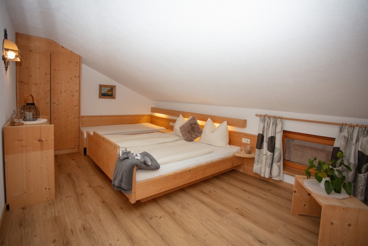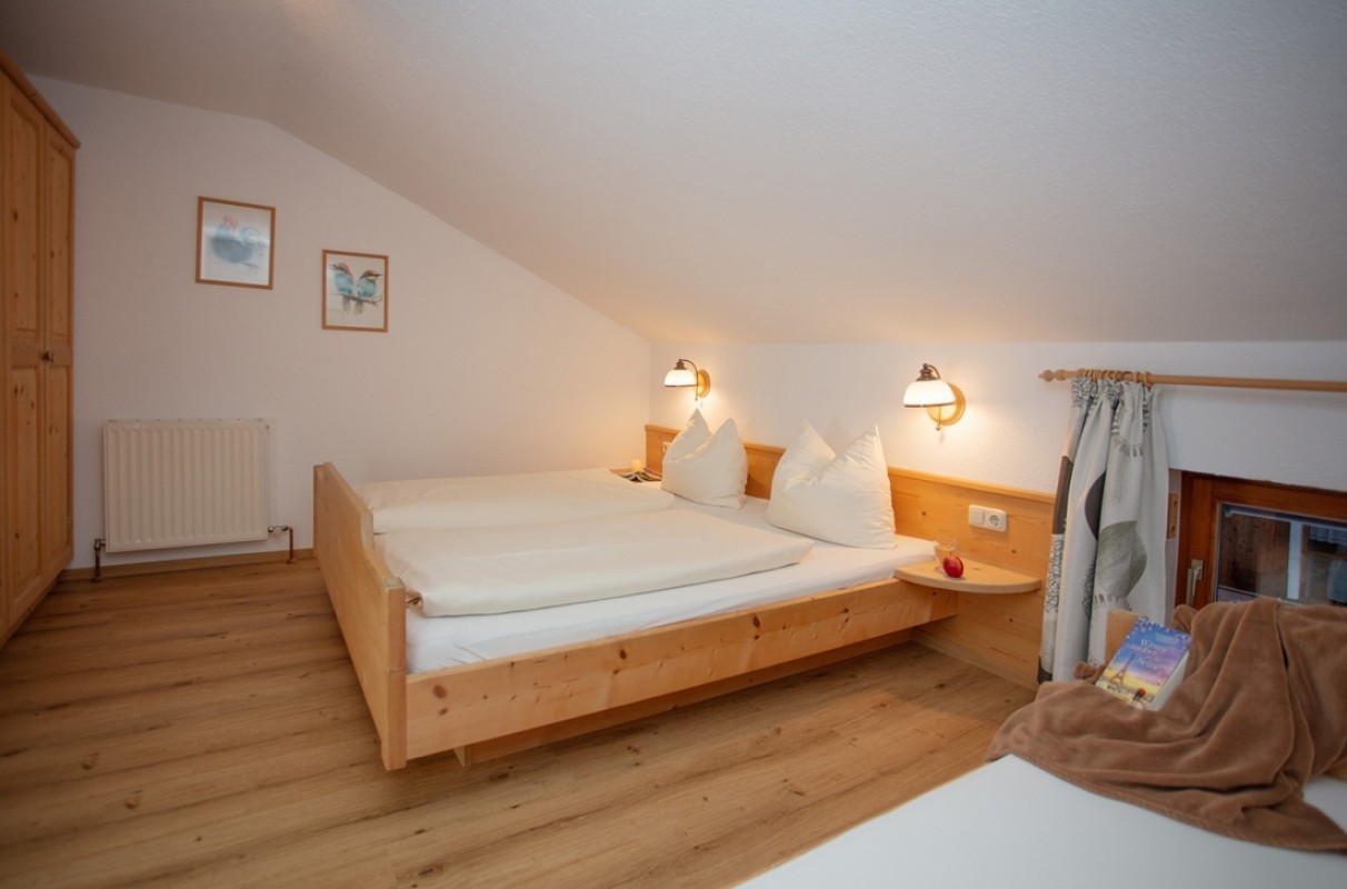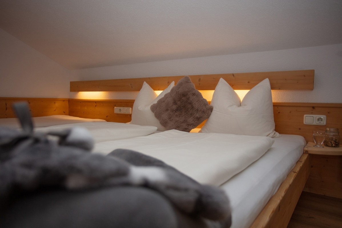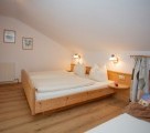 Wohnung mit einem Schlafzimmer (Doppelbett) und einem Einzelbett im gleichen Raum.