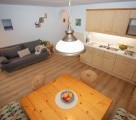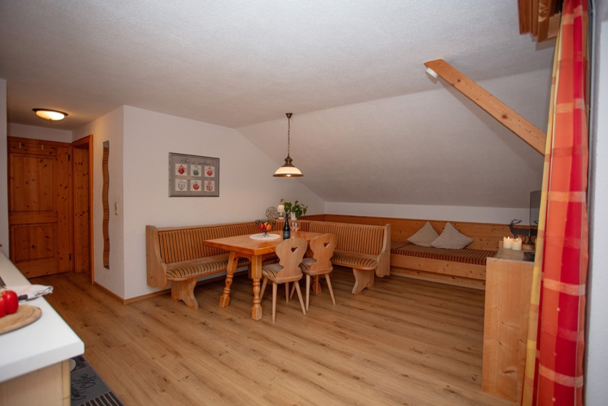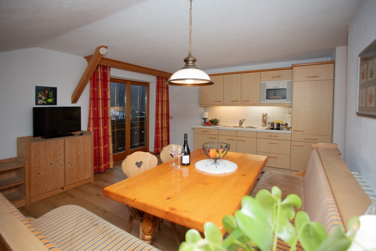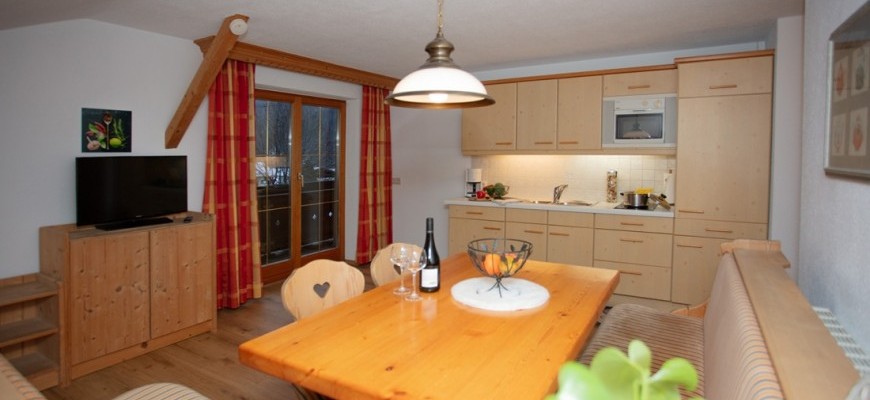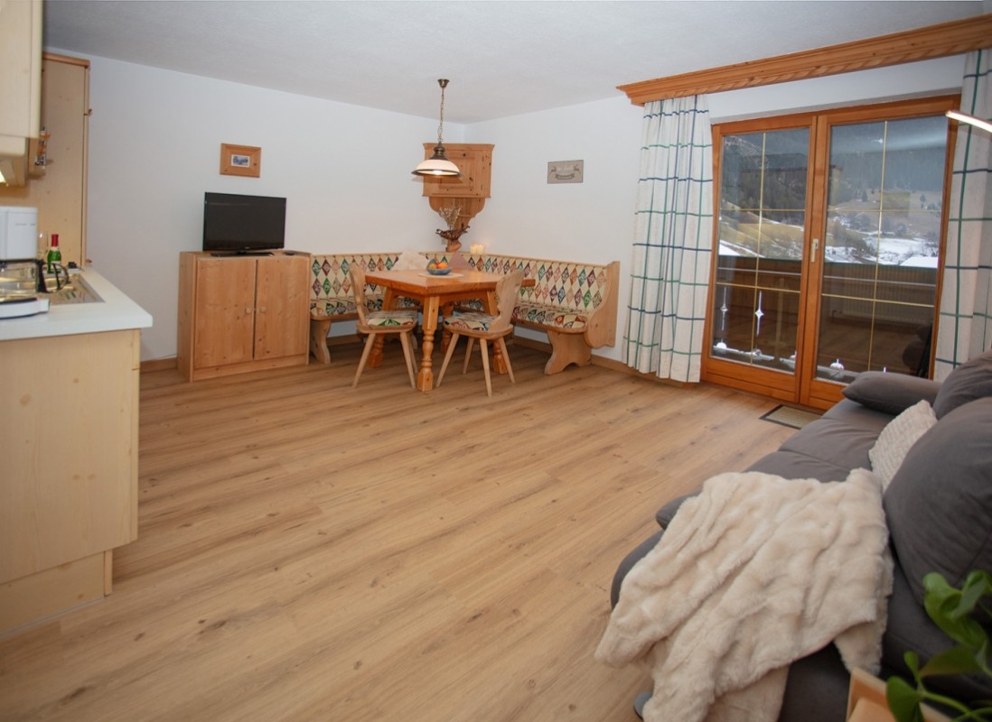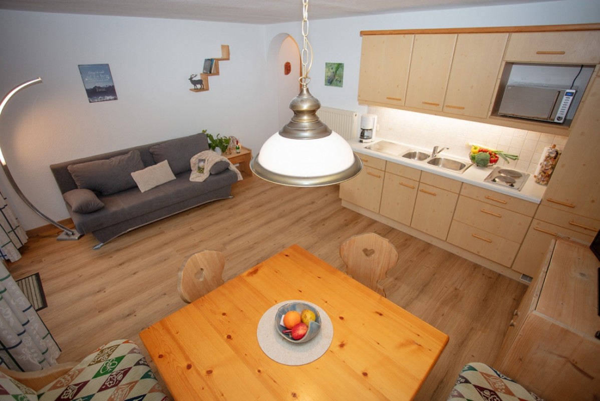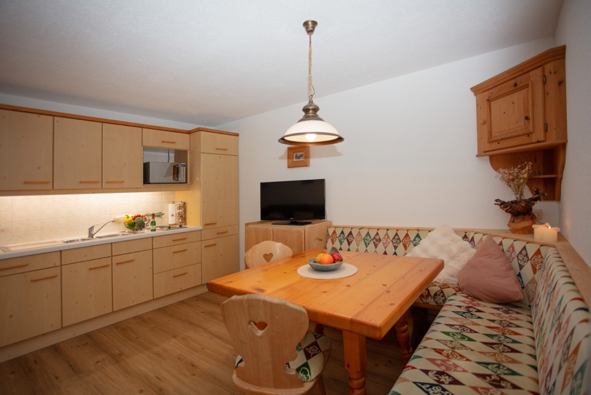 Wohnküche mit Couch, Eckbank und einem voll ausgestattetem Küchenblock. 80cm Flat-TV, Safe, GRATIS W-Lan, Dusche und WC.