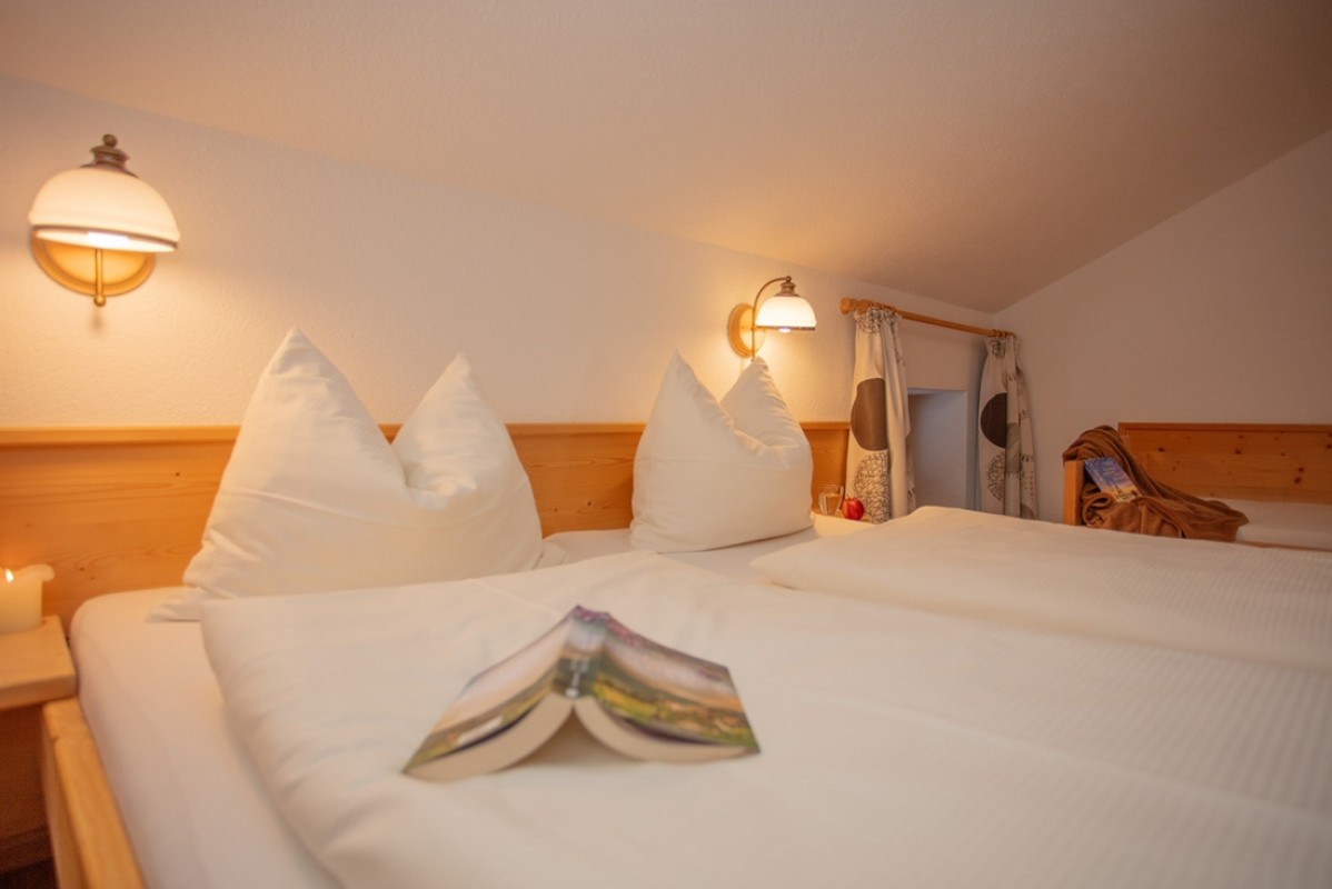 Wohnung mit einem Schlafzimmer (Doppelbett) und einem Einzelbett im gleichen Raum.